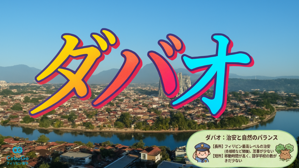 経済特区でゲート管理されているクラーク、厳格な条例があるダバオ、歓楽街がないバギオやイロイロがフィリピン国内でもトップクラスに安全です 。「💡あわせて読みたい: スリなどの具体的な対策や最新の治安事情について詳しく知りたい方は、こちらの記事『フィリピン・セブ島留学は危険?2026年の治安状況と安心して過ごすための対策ガイド』も必ずチェックしてくださいね。」