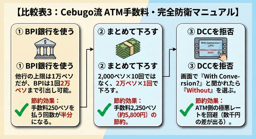 【比較表3:Cebugo流 ATM手数料・完全防衛マニュアル】